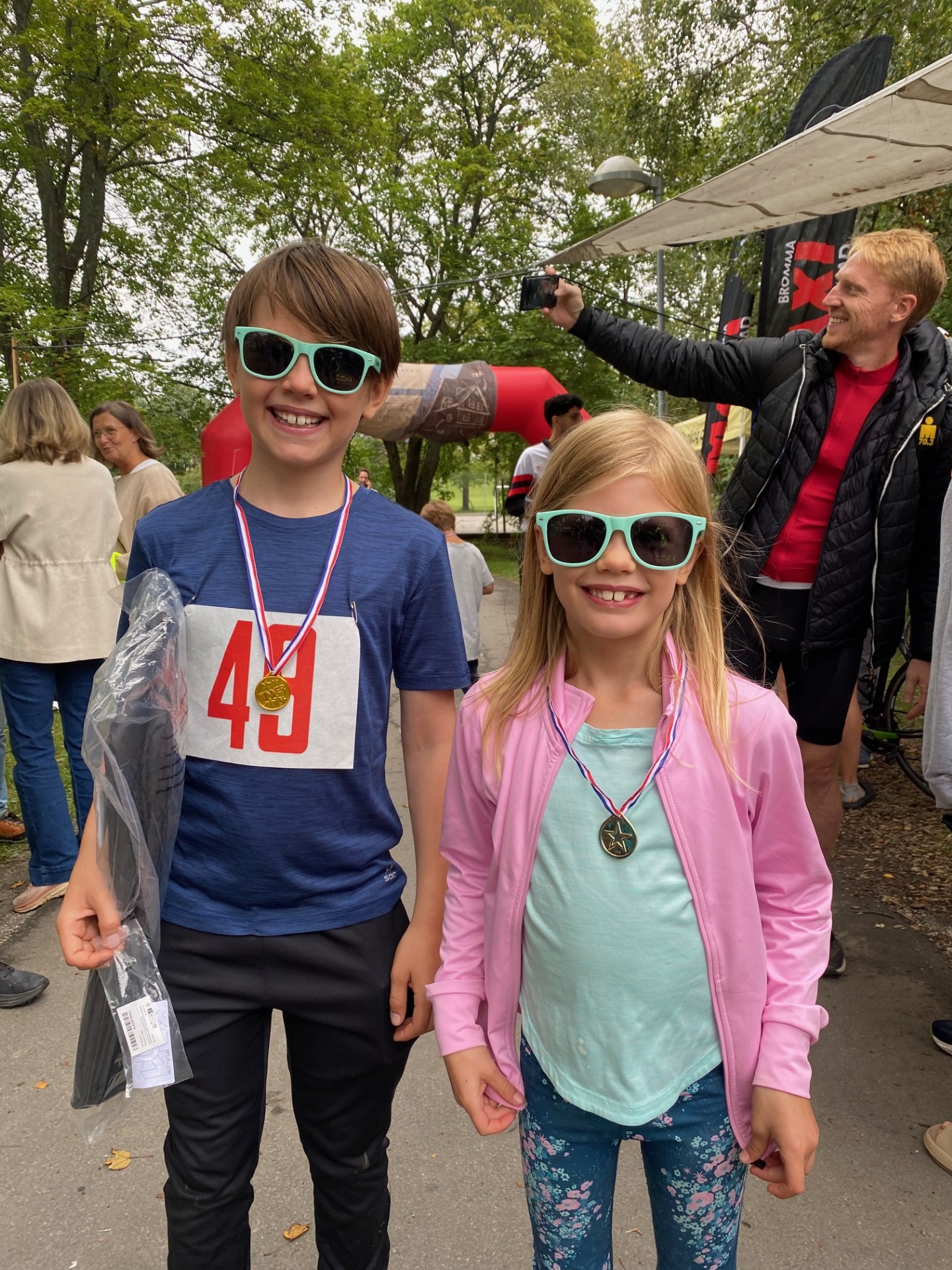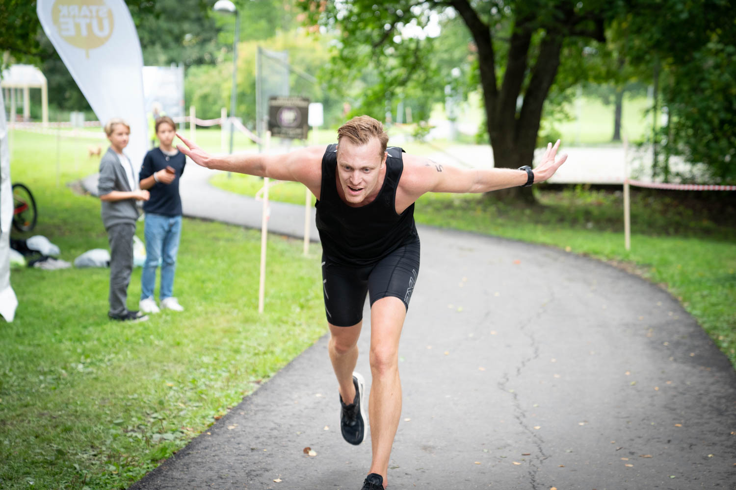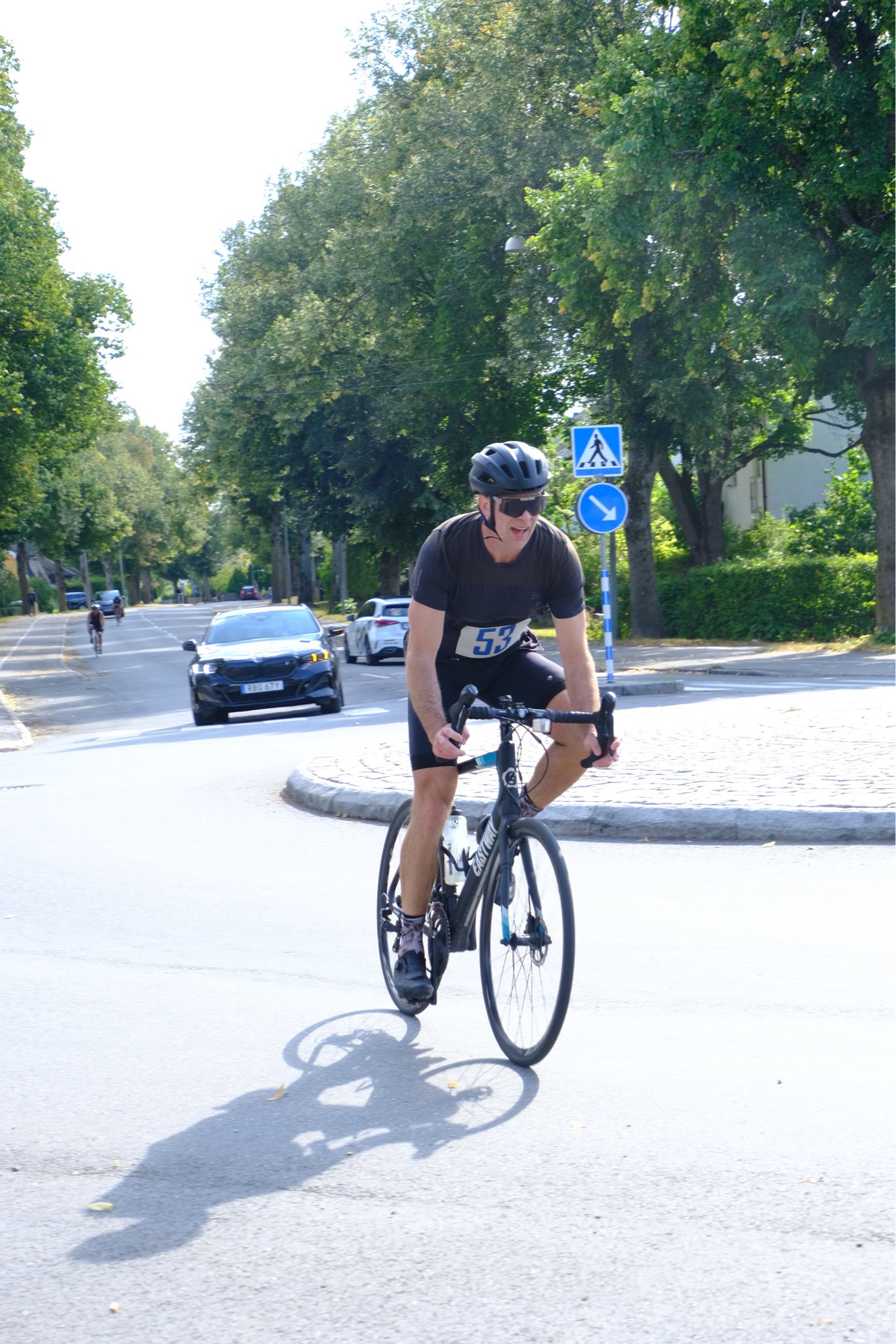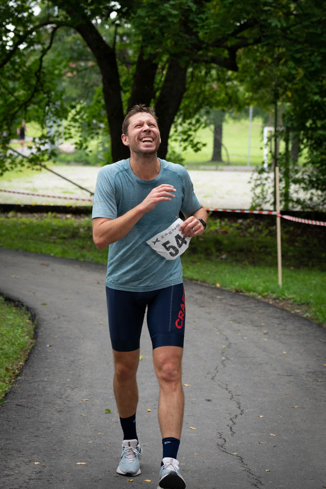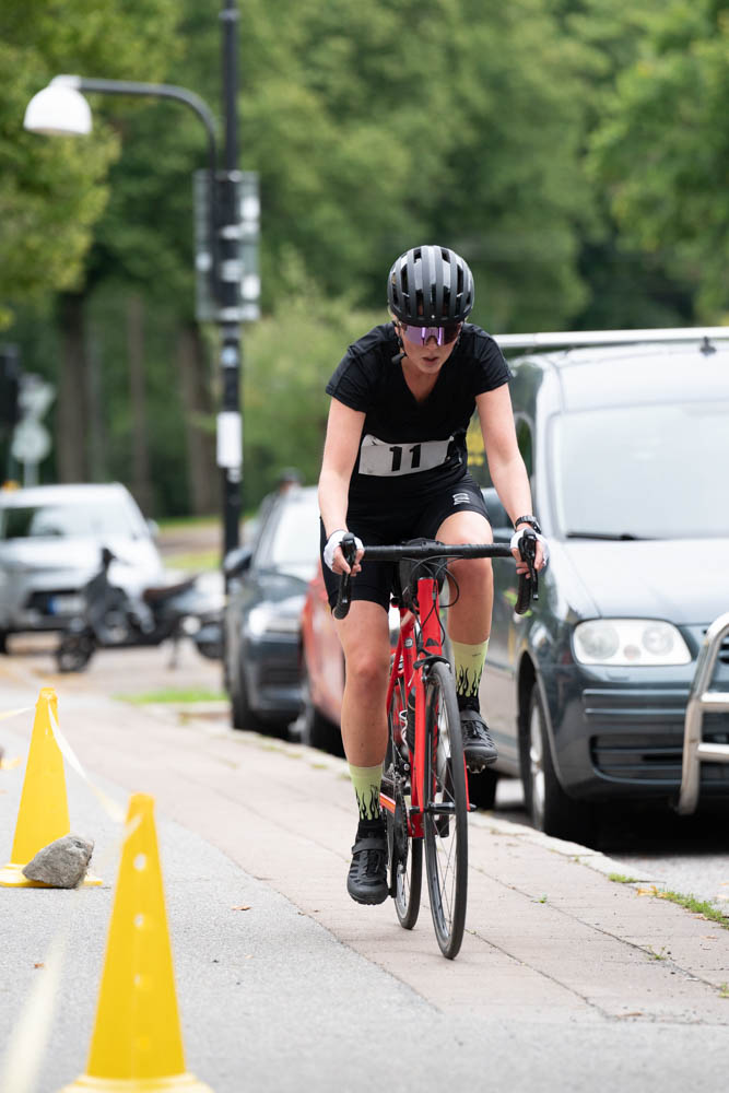 Växling från simning till cykel sker på gräsfältet vid kyrksjön.