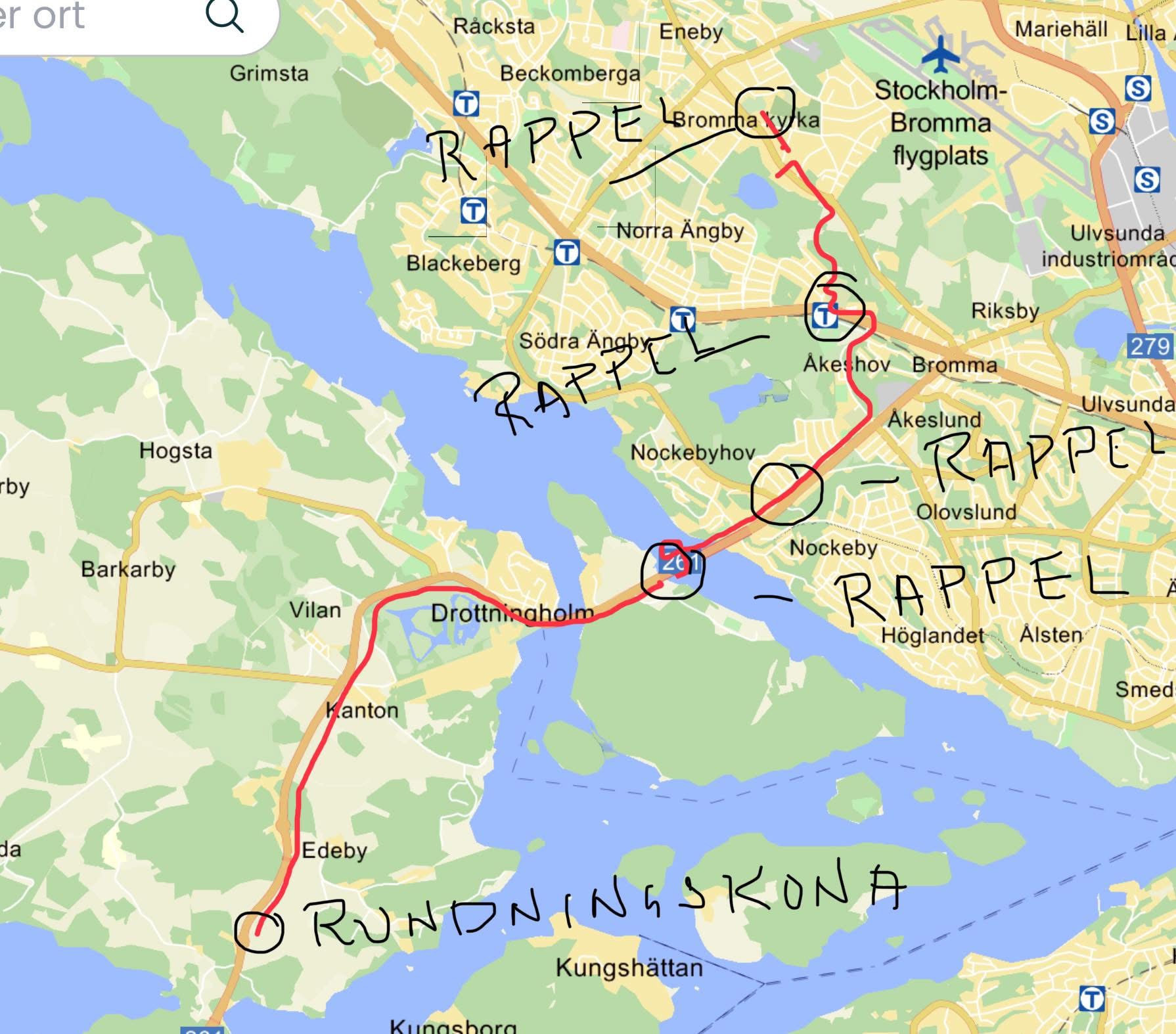 Växlingen från cykel till löpning sker i växlingsområdet vid Bromma Bistro. Sen är det tre varv runt Bromma Kyrka innan målgång.
